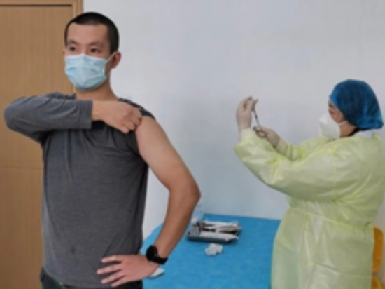 2020年9月に抗體強(qiáng)化のため再度ワクチン接種を受ける任超さん(寫真提供?任超さん)。