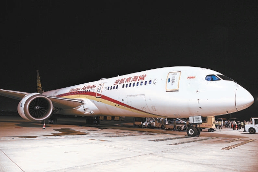 3月27日、海南航空の「HU787便」が35トンの貨物を搭載して、??诿捞m國際空港からフランス?パリへ飛び立ち、海南自由貿(mào)易港にとって初めての大陸間定期貨物路線が就航した。この路線は毎週2往復?計4便が運航し、海南自由貿(mào)易港のために國際物流の「空中ルート」を構(gòu)築した。(撮影?蒲暁旭)
