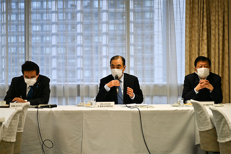 中國の孔鉉佑駐日大使は13日、招待に応じて、日本の自民黨外交部會と中日関係やその他の問題について意見交換を行った。佐藤正久外交部會長、新藤義孝政調(diào)會長代理らが出席した。在日本中國大使館ウェブサイトが伝えた。