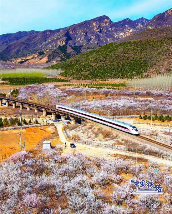 車體の真ん中にピンクのラインがデザインされている北京市郊外鉄道?懐柔密雲(yún)線(S5線)の「懐密號(hào)」は、ピンクに染まった山と密雲(yún)ダムの間を駆け抜け、慌ただしい都市での生活から一時(shí)離れて、美しい春の景色広がる郊外へと連れていってくれる。北京の市民には、郊外に日帰り旅行に行くという新しいレジャーの選択肢ができた。
