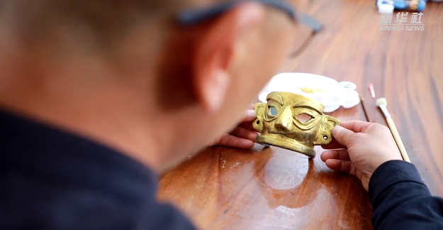 浙江省泰順県の無(wú)形文化遺産である米塑(米粉を練って作った人形)の伝承人?張?zhí)鹎澶丹螭献罱?、その技術(shù)を用いて、四川省の三星堆遺跡で最近発見(jiàn)され、話題となっている「黃金の仮面」を復(fù)元した。「米塑を作るようになって十?dāng)?shù)年経つ。最近、ネット上で黃金の仮面を見(jiàn)て、とてもおもしろいと思い、作ってみた」と張さん。
