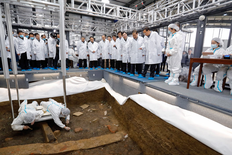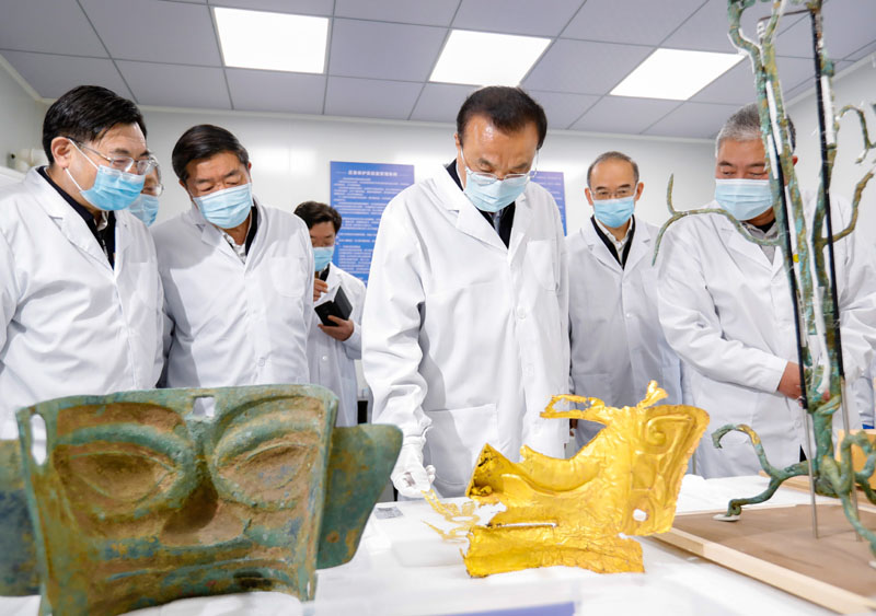 李克強総理は19日、四川省広漢市で三星堆遺跡の発掘現(xiàn)場を視察した。