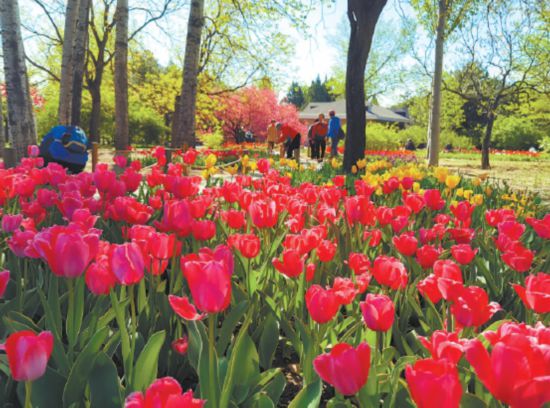 同植物園では、第33回桃の花祭りも開催中で、チューリップのほか、桃の花やハナカイドウ、チョウジなど、春の花約100種類(品種)が開花時期を迎えて、競うように咲き誇っており、園內(nèi)はそこかしこに花の香りが漂っている。美しい春の景色が園內(nèi)中に広がっているため、市民にとっては春を感じるために必ず行っておきたい場所になっている。(編集KN)