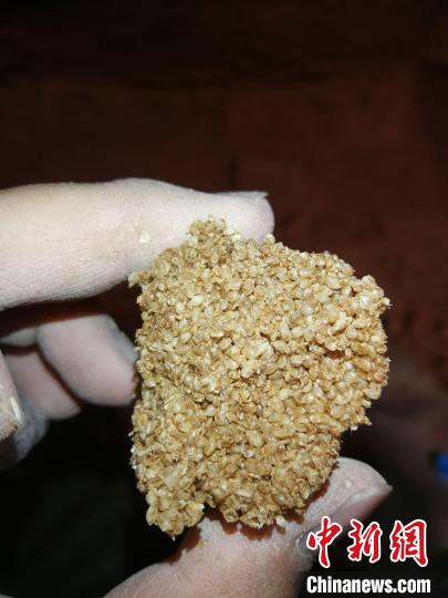 陶房倉の高さは約80センチメートル、長さは約1メートル。前漢の房倉のうちこれほど大きな物はめったに見つかっていない。その中で見つかった食糧は、専門家の鑑定により、粟であることが分かった。これは當(dāng)時の前漢の人々の飲食構(gòu)造を判斷するのに非常に重要な材料を提供した。(編集YF)