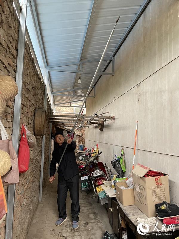 「高いところの柿はこれで取るんだよ」。陝西省渭南市富平県の三河村で柿の栽培と干し柿作りをしている黃戦軍さん(74)は、自宅橫の道具置き場で、長いポールの先にハサミが取り付けられた道具を見せてくれた?!溉毡兢且粫r期柿もぎの仕事をしたことがあるんです。高いところにある柿を取る時は腳立を使ってたんですよ」と言うと、黃さんは「そうかそうか」とでも言うように目を細めた。人民網(wǎng)が伝えた。