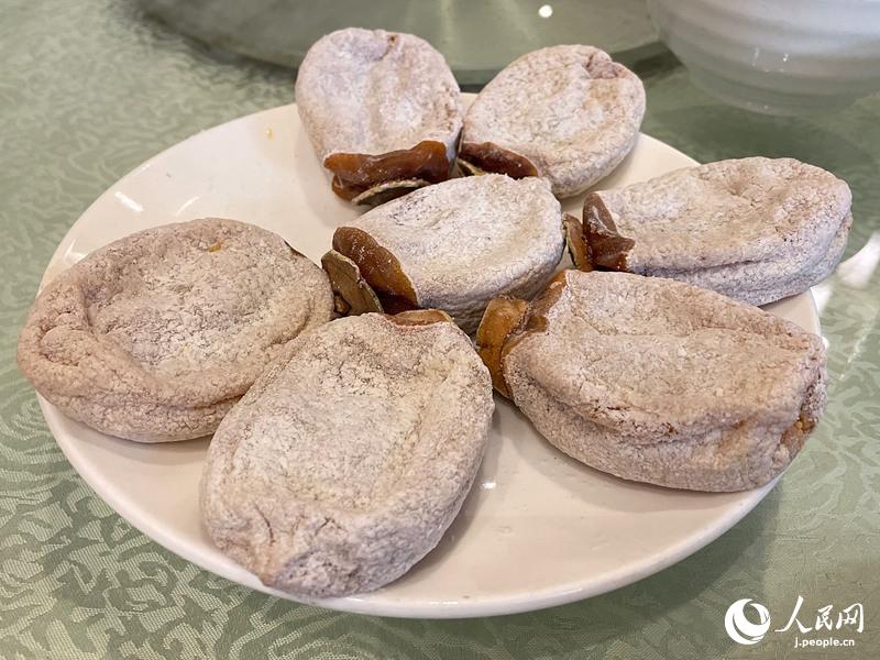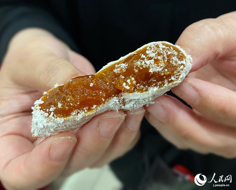 富平産の干し柿「富平柿餅」。甘さは控えめで、果肉がみずみずしい(撮影?蘇纓翔)