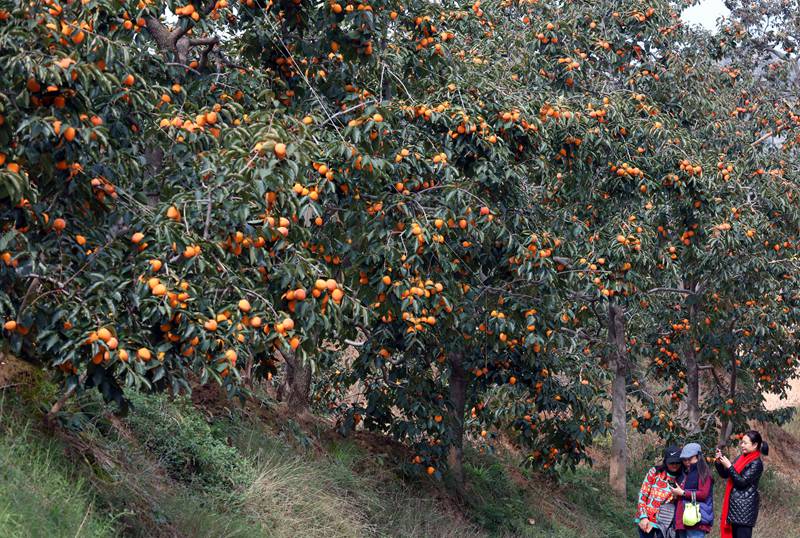 たわわに実る富平県三河村の尖柿(提供?富平県三河村美麗郷村弁公室)