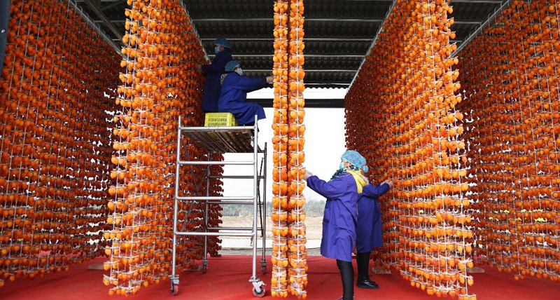 富平県では、2400ヘクタールの土地に柿の木が植えられている。年間で柿25萬トンを収穫、干し柿6萬トンを生産し、年間生産額は40億元(1元は約16.7円)に上る。三河村では柿1500トンが収穫され、干し柿600トン余りを生産。2020年、村全體の農(nóng)民の一人當(dāng)たり純収入は1萬9510元に達した。