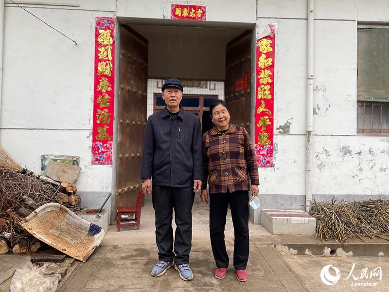 自宅の前に立つ黃戦軍さんと妻の王淑芳さん(撮影?勝又あや子)
