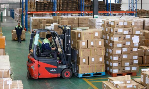 2020年11月11日、成都鉄路保稅物流センター越境EC保稅倉庫で、歐州に輸出する荷物の準備をする作業(yè)員(白桂斌?人民図片)。