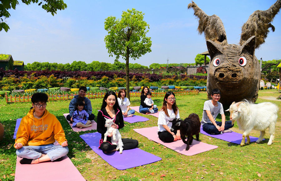 浙江省嘉興市の観光農(nóng)場である「桐郷豚舎里」で4月21日、放し飼いのヤギがいるスペースでヨガを楽しむというユニークな「ゴートヨガ」が行われた。會場に集まった參加者たちは、ヤギやウサギといった動物たちと共に、難易度の高いヨガのポーズに挑戦した。ヨガは古くから伝わる身體的エクササイズとして、信奉する人も多い。そしてネットで注目を集め、たちまち人気が急上昇している「ゴートヨガ」は、ヨガのトレーニングと同時に、小動物と親しく觸れあえることから、「レジャーとストレス解消、どちらにも効果抜群」と高く評価されている。またこの農(nóng)場では、親子連れなどがかまどを作って鍋を吊るし、柴を運んで火を起こして、野外調(diào)理を楽しむこともできる。(編集KM)