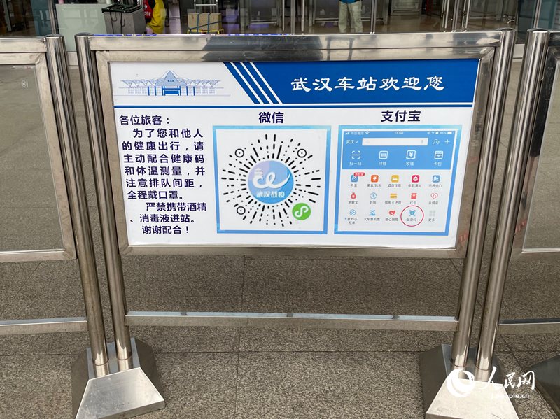 武漢駅の入り口に掲示された「健康コード」。何も問題のないことを示す緑色のコードでないと構(gòu)內(nèi)に入ることができない(撮影?勝又あや子)