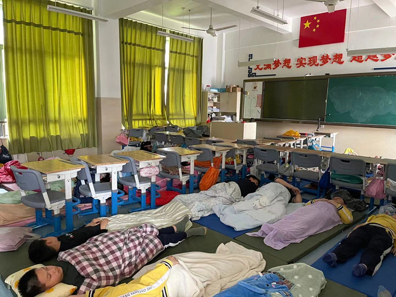 育才京杭小學(xué)校も取材して見(jiàn)ると、午後1時(shí)20分になると、「3、2、1、終了」という聲と共に、チャイムが鳴り、5年3組の擔(dān)任教師が「みんな起きて!」と児童を起こし、教室の電気を付けていた。児童たちはわずか5分で、布団やマットを畳んで整え、教室の四隅に移動(dòng)させていた機(jī)を元に戻して並べていた。