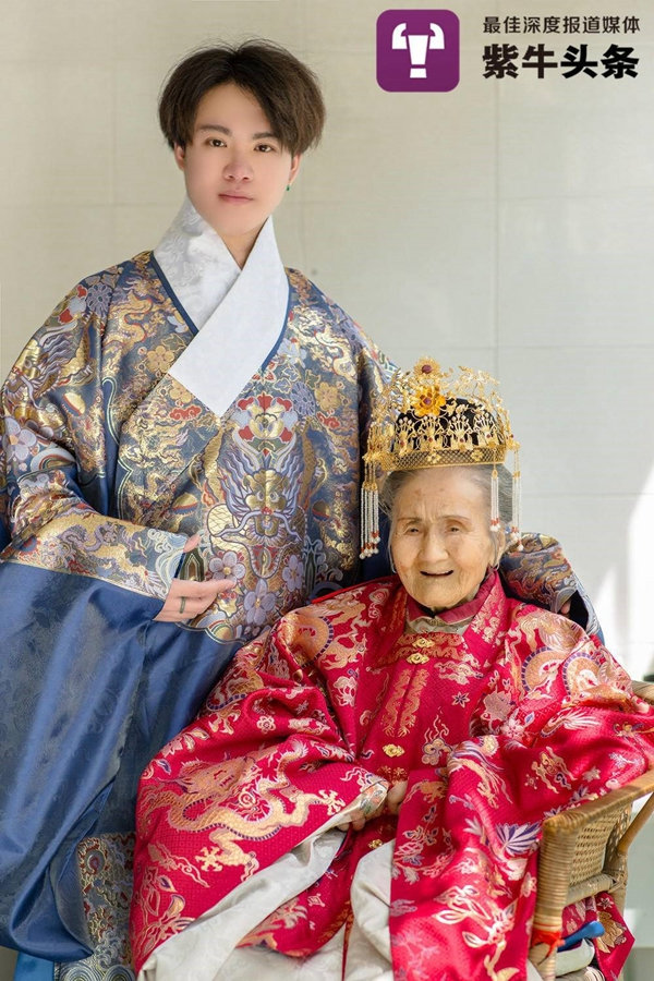 投稿したのは、周景潔さんという23歳の若者で、南京市秦淮區(qū)と友人と一緒に漢服スタジオを開いている。曾祖母が撮影で著た漢服は、周さんがオーダーメイドで作ったもので、頭に飾られたアクセサリーは、彼が自ら作ったものだという。彼は、「高齢となった曾祖母に、幸せな想い出を殘してあげたかった。曾祖母は、これまでに著た中で最も美しい服で、嬉しくてたまらない、と言ってくれた」と話している。(編集KM)