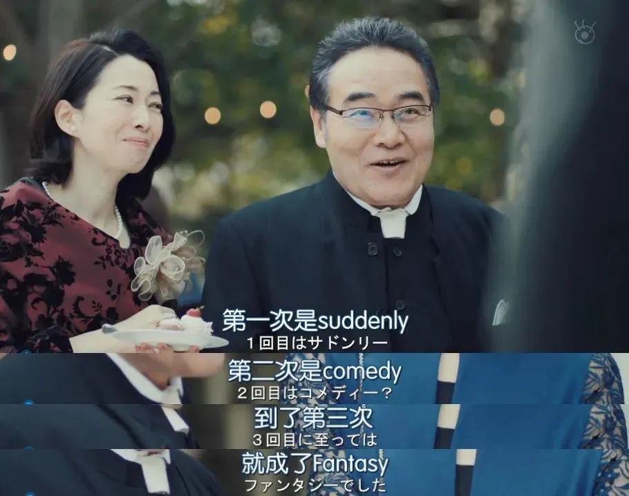 とわ子は、3度結(jié)婚し、3度離婚したため、どれも名乗ったことのある苗字で、誰も間違っていないからだ。とわ子の父親は、「花嫁の父を3回やっていますから」とし、「最初はサドンリー(suddenly)、2回目はコメディー(comedy)、3回目に至ってはファンタジー(fantasy)だった」と開けっぴろげにとわ子の「黒歴史」について語るのだった。