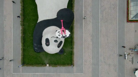 このかわいい「自撮りパンダ」は、長(zhǎng)さ26メートル、幅12メートル、高さ11メートル、重さ130トンの超ビッグサイズのパンダだ。