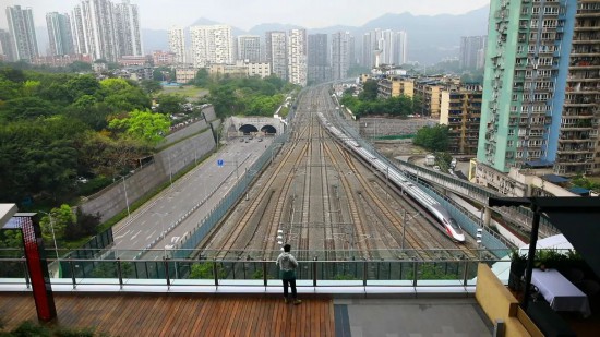 成都と重慶を結(jié)ぶ「復(fù)興號(hào)」が駅ビルを突き抜けるように走る!