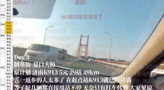 今月9日、唐さんは、動(dòng)畫(huà)共有サイト?bilibili(ビリビリ)に、上海を出発して北京に到著するまでの全行程をまとめた約16分間の動(dòng)畫(huà)を投稿。動(dòng)畫(huà)を見(jiàn)ると、周りの乗客の話す方言がどんどん変化している。また、各地の風(fēng)土、人情も、公共バスを通して見(jiàn)ることができる。