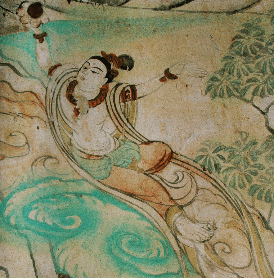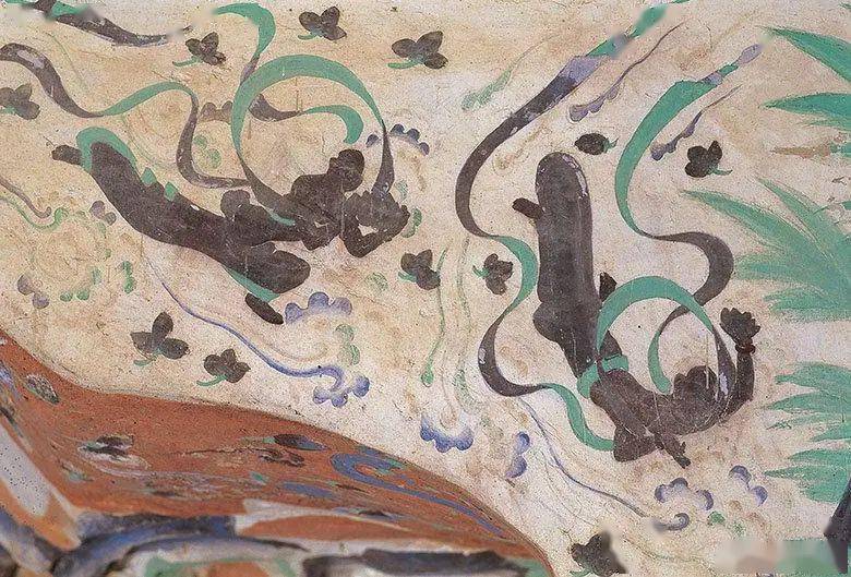莫高窟の壁畫には、橫向きや縦向きで飛ぶ飛天のほか、楽器を演奏しながら飛んでいる飛天も描かれている。