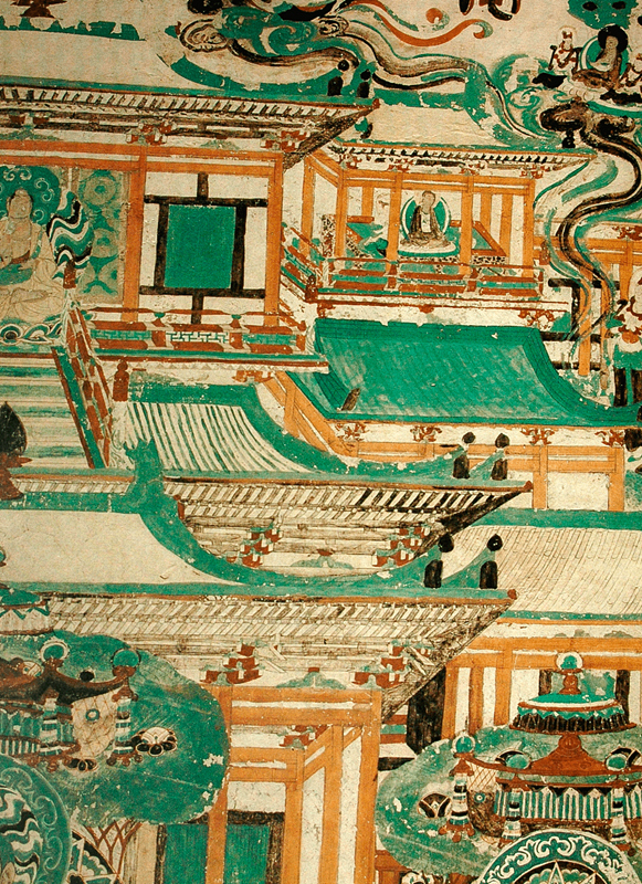 莫高窟の壁畫をぱっと見すると、ごちゃごちゃとした絵が一面に広がっているように見えてしまうかもしれないが、拡大してじっくり見てみると、実に細(xì)かな所まで丁寧に描かれていることが分かる。