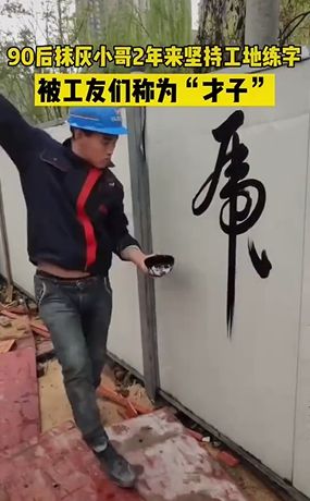 ヘルメットをかぶったすっきりとした顔つきの男性が、半紙の上に大膽に筆を走らせ、水墨畫を描いていた。その男性は石建國さん。浙江省溫州市で5年間左官として働いており、趣味は習字や絵だ。石さんは実家から出稼ぎに出て、すでに10年以上になるものの、この趣味はずっと続けているのだという。(編集KN)