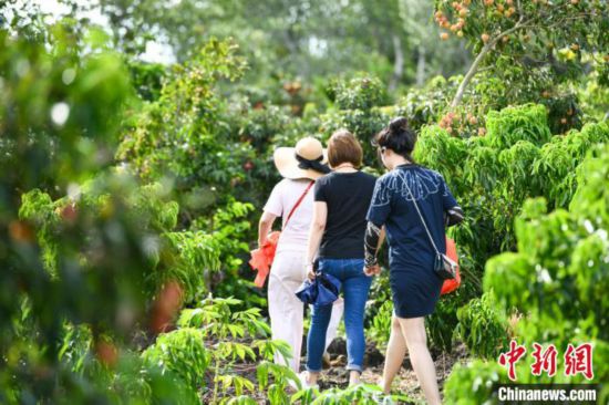 ライチ園でライチ狩りをする女性ら(撮影?凌楠)。