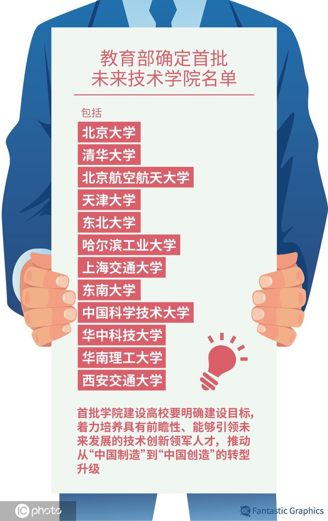◆建設(shè)の目標(biāo)を明確にする。今後10-15年間に先進(jìn)性、革命性、畫期性ある技術(shù)に焦點(diǎn)を當(dāng)て、従來のやり方?制約?障壁を突破し、変革?イノベーション?リーダーシップを強(qiáng)化し、先進(jìn)性を備え、將來の発展をけん引することのできる技術(shù)イノベーションリーダーの育成に力を入れ、「メイド?イン?チャイナ」から「クリエイテッド?イン?チャイナ」へのモデル転換?高度化を推進(jìn)し、高等教育強(qiáng)國の建設(shè)、質(zhì)の高い発展へのサービス提供、中華民族の偉大な復(fù)興の実現(xiàn)のために基礎(chǔ)固めをすることを目指す。