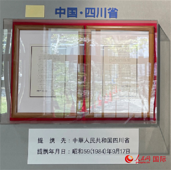 1984年に広島県は四川省と友好提攜を締結(jié)。広島県庁內(nèi)に展示されている當(dāng)時(shí)調(diào)印された友好提攜締結(jié)協(xié)定書(shū)(撮影?呉穎)。
