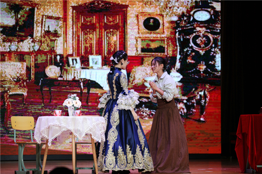 決勝に進(jìn)んだクラスの演目は、芥川龍之介の作品「藪の中」、シェイクスピアの名作「ヴェニスの商人」、モーパッサンの「首飾り」、瞿秋白を題材にした「ここはいいところ」、そして曹禺の代表作「雷雨」の5作品。日本や西洋の古典的作品のほか、中國(guó)の革命家を題材にした作品、中國(guó)を代表する劇作家の名作が揃い、バラエティーに富んだラインナップとなった。