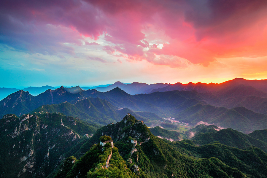 北京市懐柔區(qū)箭扣長城の朝焼け雲(yún)(寫真著作権はCFP視覚中國が所有のため転載禁止)。