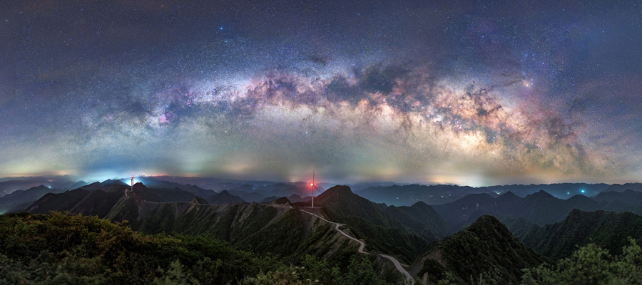 重慶市石柱刀背道路の夜空に光る銀河(寫真著作権はCFP視覚中國が所有のため転載禁止)。