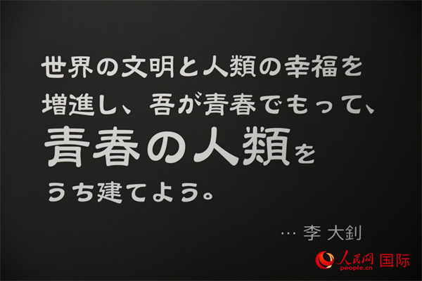 早稲田大學歴史館に展示されている李大釗の詩「青春」日本語訳の一節(jié)(撮影?呉穎)。