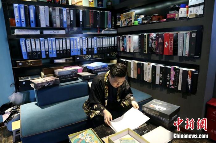 「マーダーミステリー」ゲームのシナリオを読む劉明浩さん(撮影?張遠(yuǎn))。