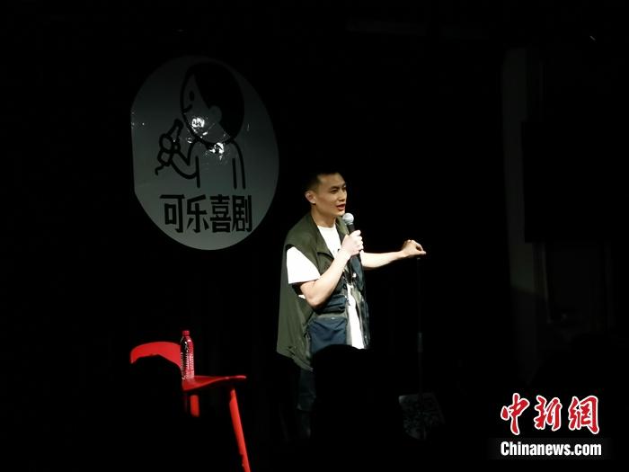 西安でステージに立つスタンダップ?コメディのパフォーマー?梁墩煌さん(撮影?黨田野)。