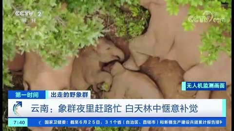 26日午前、ゾウの群れは玉渓市峨山県富良棚郷近くの谷間にやって來た。夜通し歩き続けたらしく、ゾウたちは疲れ果てた様子で、群れのリーダーに連れられて、休憩できる場所に行って橫たわり、ぐっすり睡眠。子ゾウは最も安全で見つかりにくい場所に寢かされていたほか、2頭のゾウが見張りとパトロールにそれぞれつき、そのうち1頭は、子ゾウにたかる蚊や蟲を枝で追い払っていた。(編集KM)