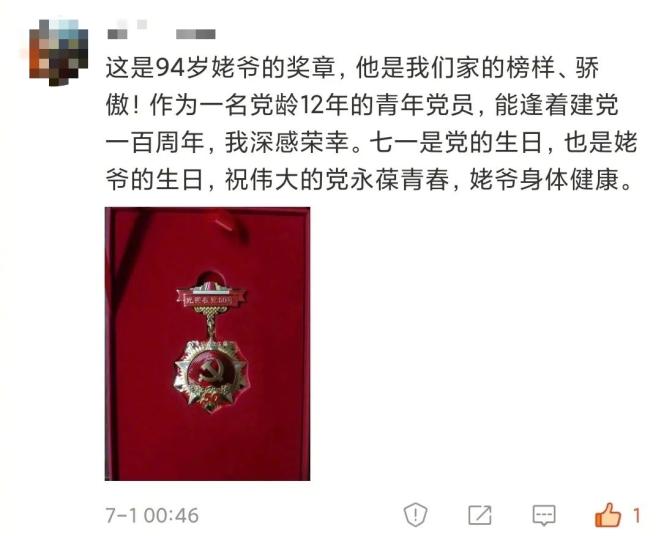 ネットユーザーたちも記念メダルを手にした「我が家の栄えある共産黨員」を誇らしげに紹介する投稿を次々アップ。人々に、ごく平凡な共産黨員の平凡ならざるエピソードを紹介している。そしてこれらの投稿內容には誇りとプライドが満ちている。