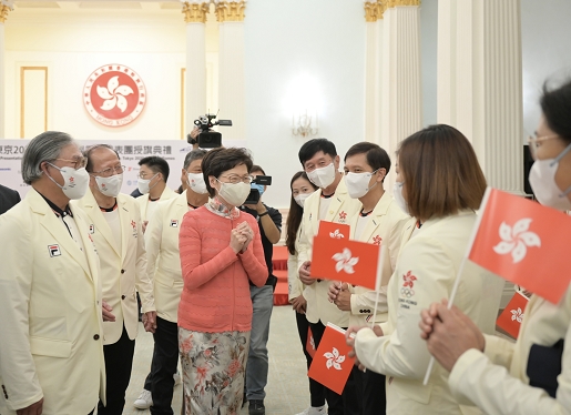 香港特別行政區(qū)の林鄭月娥(キャリー?ラム)行政長(zhǎng)官は挨拶の中で、「オリンピックに出場(chǎng)するアスリートが、幸先の良いスタートを切り、香港地區(qū)のために栄光を勝ち取ることを願(yuàn)っている」とエールを送った。