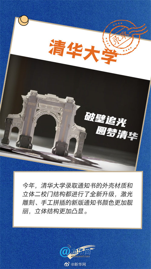 今年の清華大學(xué)の合格通知書(shū)は、外側(cè)の材質(zhì)と2つの立體校門(mén)の構(gòu)造がいずれも全面的にアップグレードされている。レーザー彫刻や手製の立體パズル形式の新版合格通知書(shū)は、見(jiàn)た目がより美しく、立體構(gòu)造がより鮮明となっている。
