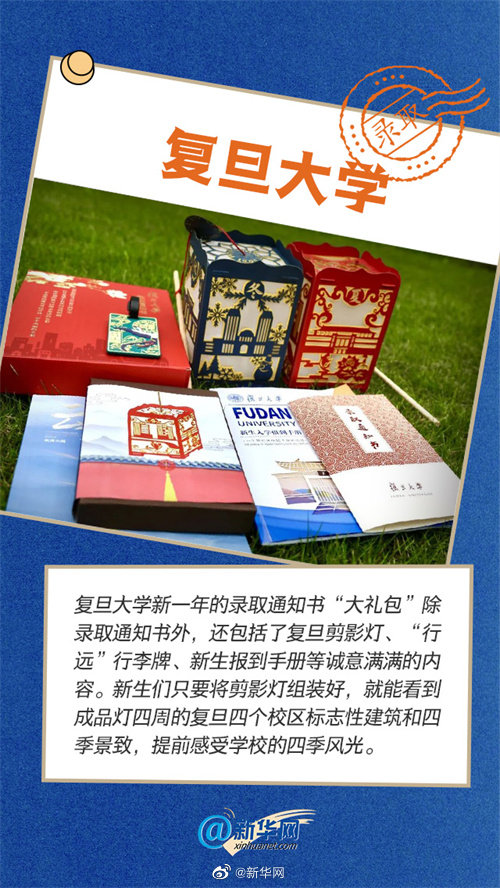 復(fù)旦大學(xué)の新しい合格通知書(shū)は、「大きいギフトバッグ」スタイル。通知書(shū)のほか、切り絵デザインのライト、バゲージタグ、新入生入學(xué)手続ハンドブックなどが入っている。切り絵デザインのライトを組み立てると、4面には復(fù)旦大學(xué)の4つのキャンパスの象徴的建物と四季の美しい風(fēng)景がデザインされており、學(xué)校の四季を入學(xué)前から楽しむことができる。