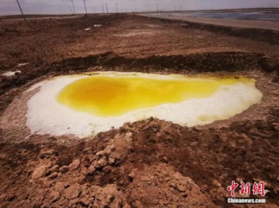 青海省茫崖市は最近、同市花土溝鎮(zhèn)小鴨湖に、黃色い小さな泉が2つあることを発見した。まるでビールのような色の水の周りには輪のように塩類が集積し、焼きたての目玉焼きのような見た目になっている。中國新聞網(wǎng)が報じた。