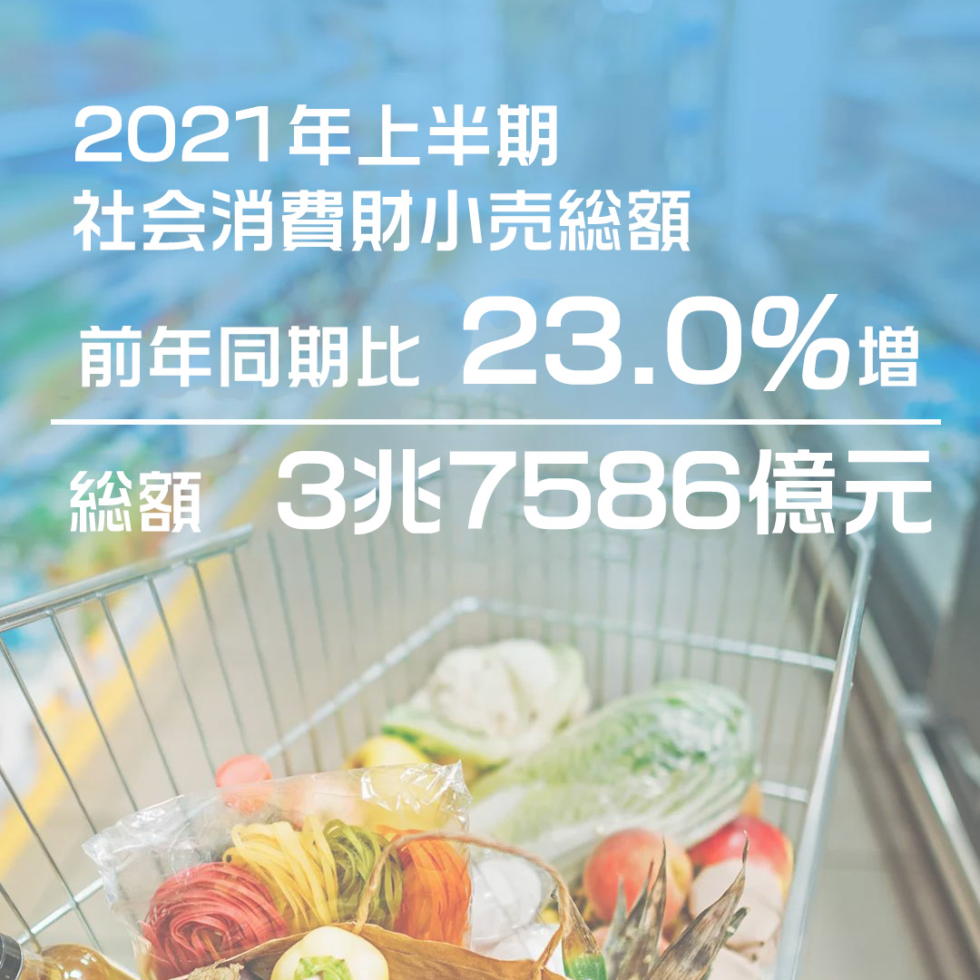 中國(guó)、1-6月の社會(huì)消費(fèi)財(cái)小売総額は23%増の64兆円に