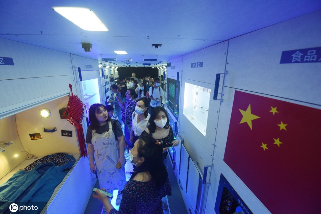 7月18日、上海天文館で、コアモジュール「天和」を見學(xué)する來館者(寫真著作権は東方ICが所有のため転載禁止)。
