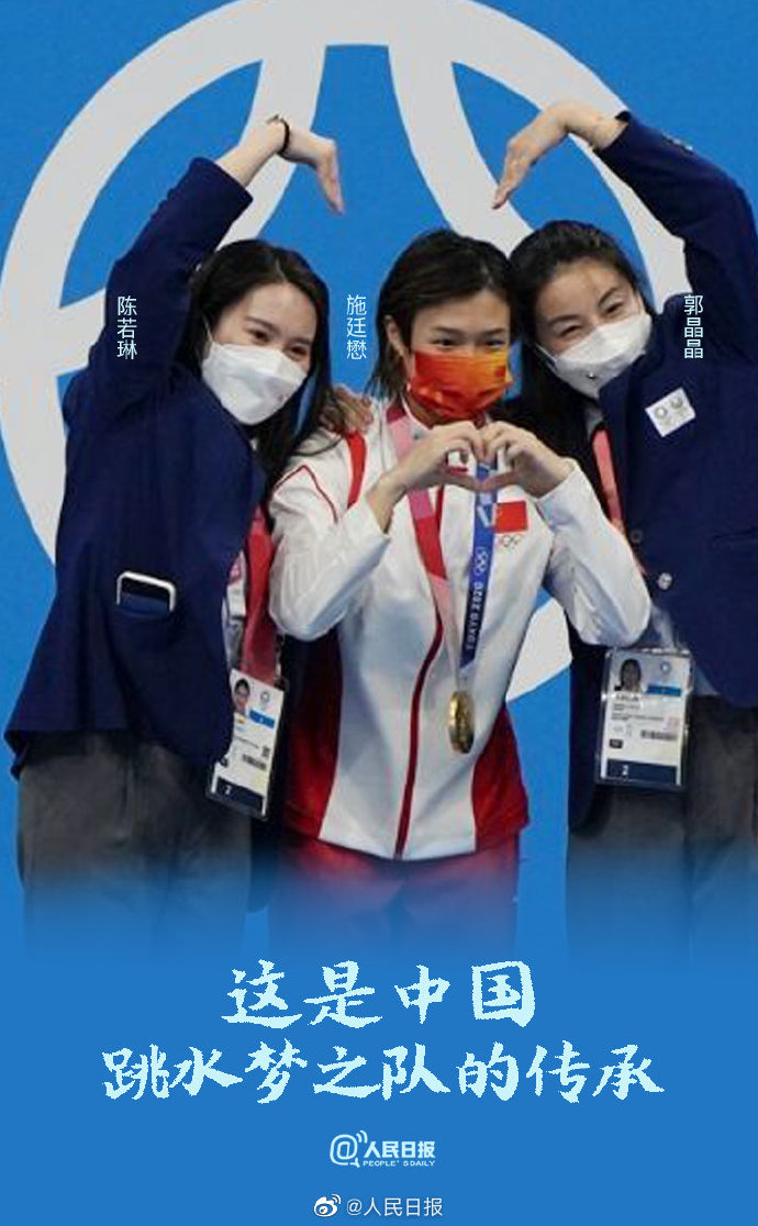 今月1日に行われた東京五輪?女子飛板飛込決勝は、施廷懋選手が383.50點(diǎn)で制し、五輪2連覇を決めた。表彰式終了後、中國の飛込界のレジェンド?郭晶晶さんや、2016年に現(xiàn)役を引退した世界チャンピオンの陳若琳さんも駆け寄ってきて、施選手を囲んでハートをつくり、記念寫真を撮影していた。中國の飛込界のスター3人が勢(shì)揃いした瞬間だった。
