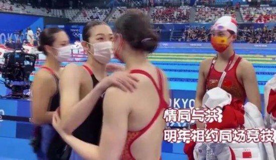 東京五輪の競泳女子で金メダルと銀メダルを2個ずつ獲得した中國の張雨霏選手は最後の泳ぎを終えた後、ある日本人選手を待ち、抱擁を交わした。それは、池江璃花子選手だった。