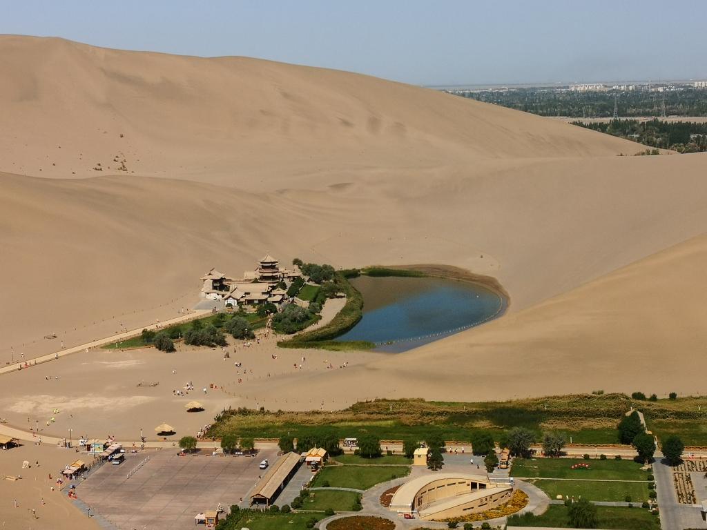 屈建軍研究員のチームが6日に撮影した、甘粛敦煌鳴沙山月牙泉景勝地。畫像は取材先が提供