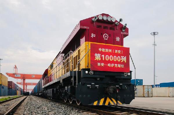 8月11日午前、布?生地、客用エレベーター、ラジエーターなどの貨物を積んだ50車両からなる國際定期貨物列車「中歐班列」の「X9041號」が、西安國際港駅を出発して、カザフスタン?アルマトイに向かった。西安路線「中歐班列」としては累計1萬本目の運行になる。