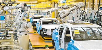 浙江省湖州市の自動車生産拠點で、全自動ロボットが高速回転して作業(yè)を進(jìn)めている様子。(撮影?譚雲(yún)俸/寫真提供は影像中國)