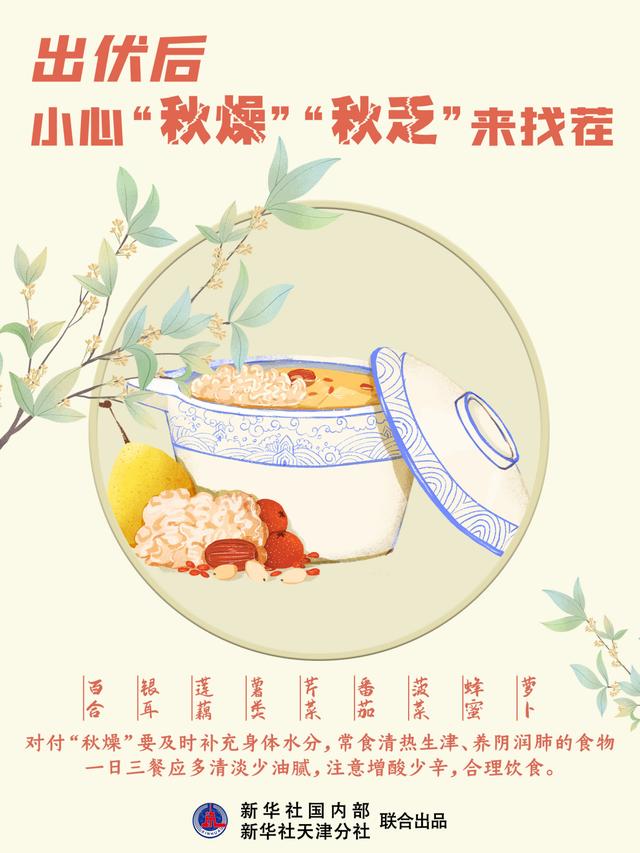 「三伏」が終わると、少しずつ空気が乾燥し、口の中や舌が乾燥して、咳が出たり、鼻に不快感を覚えたりしやすくなる。また、暑かった夏が終わって涼しくなると身體がだるいと感じ、俗にいう「秋バテ」になる人も多い。