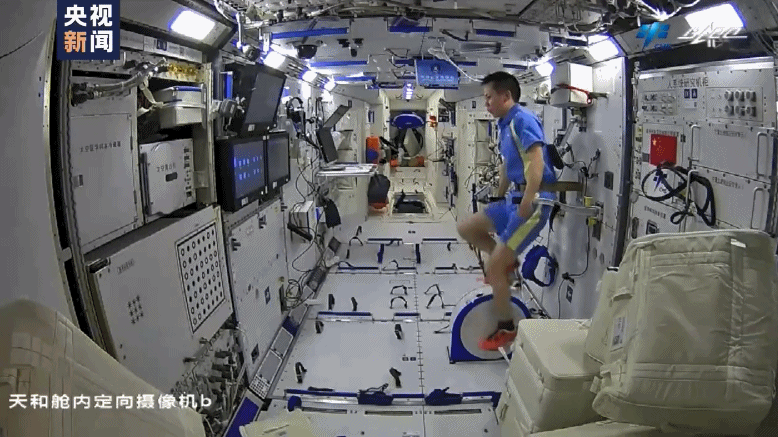 懸垂、エアロバイク、ランニング、ストレッチ…コアモジュールのトレーニングエリア內で、宇宙飛行士3人はトレッドミル、エアロバイク、ストレッチストラップなどのフィットネス器具を使いトレーニングを行う。宇宙飛行士全員に獨自の運動プランがあり、宇宙での滯在期間が長くなるにつれ、彼らの毎日の運動強度がすでに個人の限界の6-8割に達している。