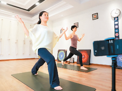浙江省湖州市徳清県武康街道はこのほどヨガのインストラクターを招き、攜帯電話でオンラインレッスンを行うことで、コミュニティ內(nèi)の住民は自宅で運(yùn)動(dòng)し、防疫とフィットネスを同時(shí)に実現(xiàn)した。撮影?趙寧(人民図片)